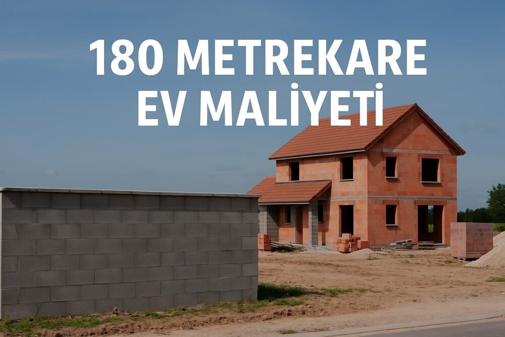 2025 yılı itibarıyla 180 metrekarelik bir evin ortalama anahtar teslim maliyeti 2.800.000 TL – 4.200.000 TL arasındadır. Kaba inşaat maliyeti ise 1.200.000 TL civarındadır. Malzeme kalitesi, işçilik, proje detayları ve şehir farkları maliyeti doğrudan etkiler.