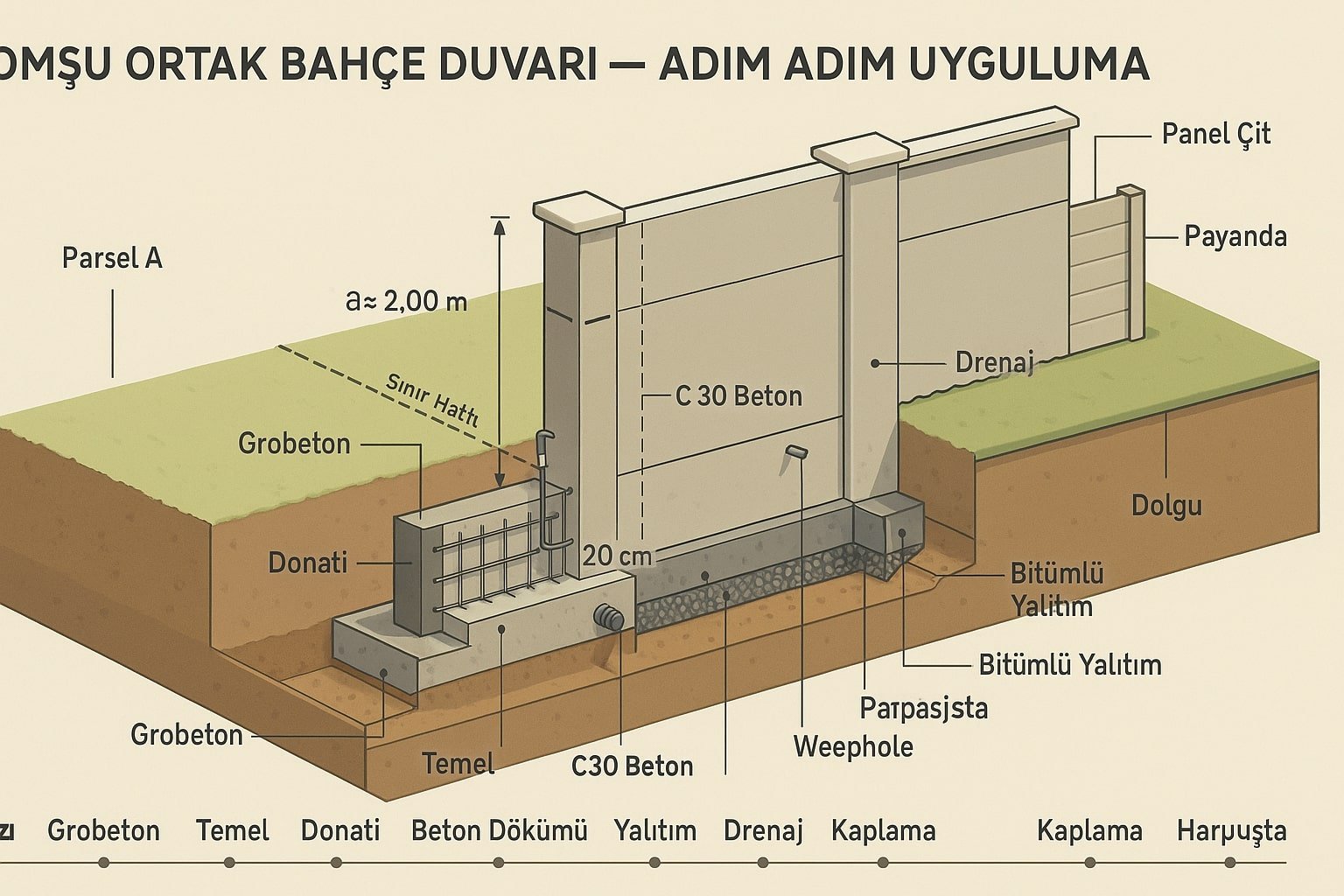 Komşu parseller arasındaki ortak bahçe duvarı, mahremiyet, güvenlik ve sınırın okunabilirliği için kritik bir elemandır. Doğru planlanmadığında komşuluk ilişkileri, bütçe ve zaman yönetimi zarar görür. Bu rehber; hukuki çerçeve, duvar tipleri, adım adım uygulama, örnek maliyet tablosu, detay çözümleri ve SSS ile süreci baştan sona netleştirir. (Aşağıdaki rakamlar örnek/varsayımsal olup yerel tekliflerle teyit edilmelidir.)